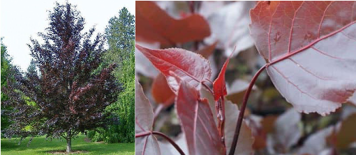 Piros levelű japán díszcseresznye Magasság: 5-6 m magas sűrű, gömbölyded koronájú fa Lomb: fényes sötétbarna, feketés levelek Virágzás: rózsaszín virágai tömegesen nyílnak (VI) Termés: -
