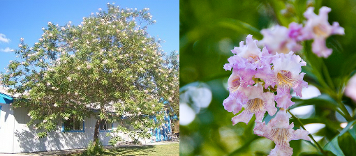 Magasság: 4-5 m magas lapított gömb koronájú fa Lomb: keskeny lándsza alakú levél, gyors fejlődésű fa Virágzás: rózsaszín tölcsér alakú virágok (VII-IX) Termés: